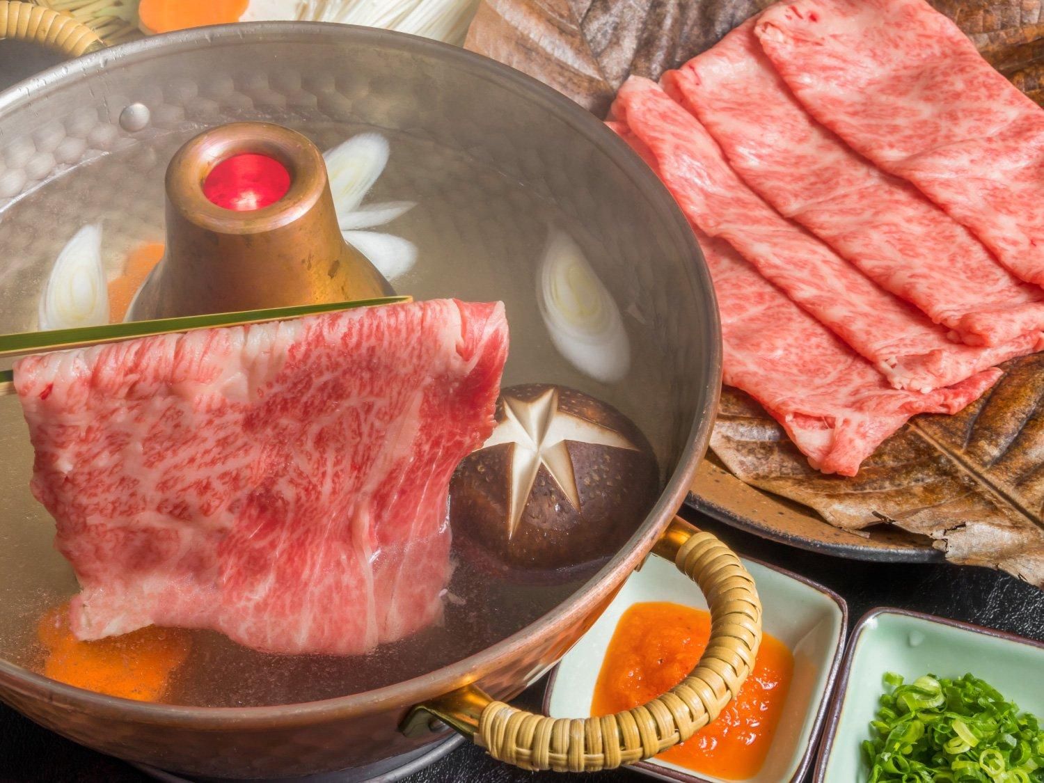 きめ細かな肉質を味わえる「豚ロース」と、全体的に脂肪が少ない赤身の部位である「牛モモ」のしゃぶしゃぶセットです。